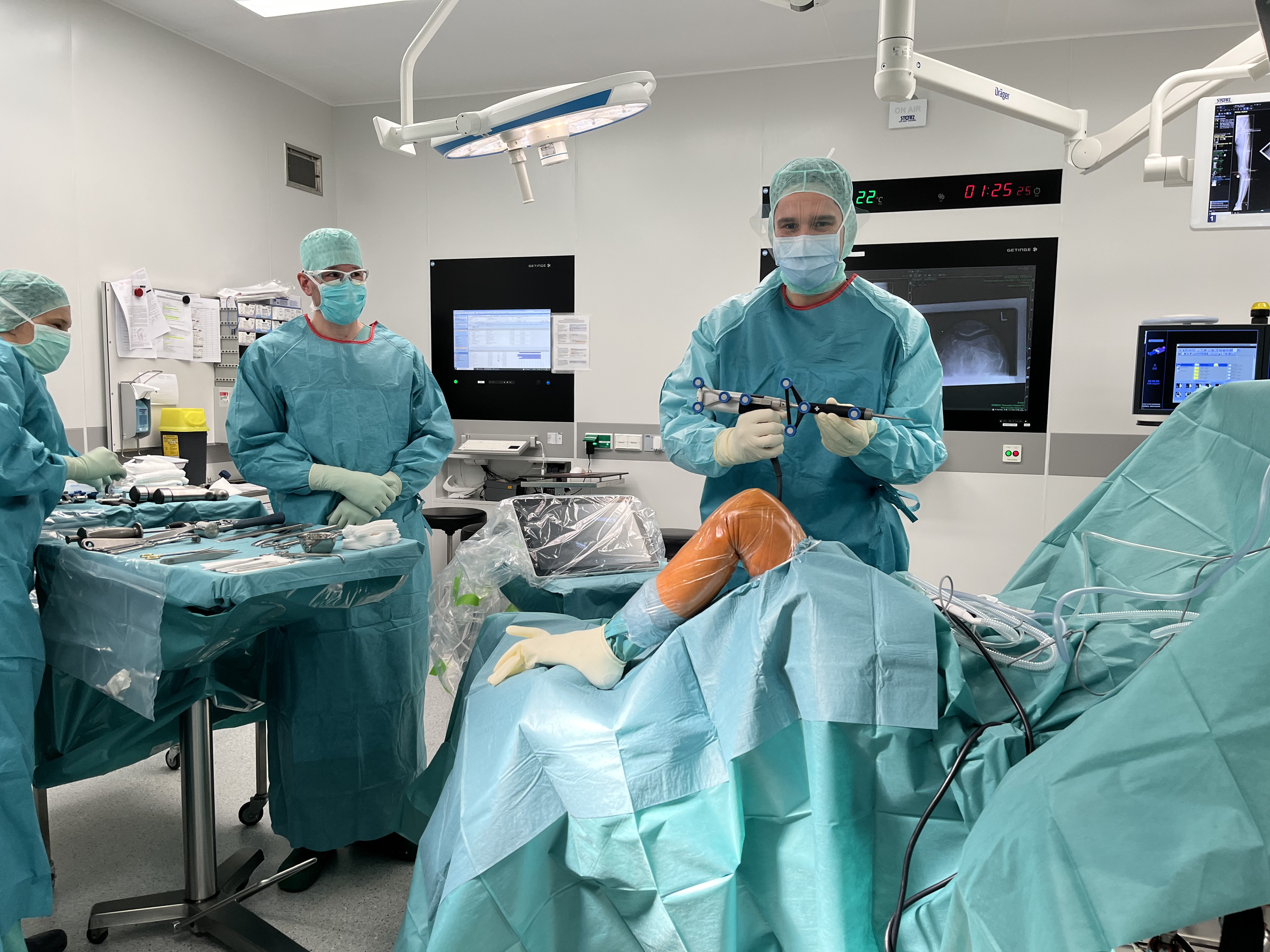 „Das roboterassistierte System unterstützt uns dabei, die unterschiedlichen anatomischen Verhältnisse im Zusammenspiel mit dem gewählten Prothesentypus zu berechnen und die spätere Funktionsweise des Gelenks patientenindividuell zu simulieren. Das passiert bevor überhaupt gesägt wird.“ Dafür wird während der Operation innerhalb weniger Minuten durch einen Sensor das Kniegelenk optisch abgetastet und eine 3D-Darstellung erzeugt. Eine zusätzliche CT-Aufnahme ist nicht mehr notwendig. Die gewonnenen Daten und der finale Plan speisen dann das robotische Fräswerkzeug, das die Chirurgen benutzen, um den Knochen für die Prothese aufzubereiten. Außerdem gibt die 3D-Rekonstruktion der patientenindividuellen Anatomie Aufschluss über die exakte Positionierung des künstlichen Gelenks und darüber, wie fest oder locker das Gelenk implantiert werden muss, damit es für den jeweiligen Patienten ideal passt und sich geschmeidig bewegt. Das Gerät ermöglicht es also das Implantat an die anatomischen Verhältnisse des Patienten anzupassen.  Das System unterstützt sowohl bei der Planung als auch bei der Durchführung der Operation, ersetzt jedoch nicht die Chirurgin oder den Chirurgen. Dr. Peter Savov ist Klinikdirektor Ettinger aus Hannover nach Oldenburg gefolgt und kennt das Gerät daher bereits sehr gut. „Wenn sie in der Technik sehr gut geschult sind, können versierte Operateurinnen und Operateure dadurch noch besser und präziser arbeiten“, so der Oberarzt. Da in der Klinik in Oldenburg bereits vorher mit einem Navigationssystem gearbeitet wurde, einer Art Vorstufe des roboterassistierten Operierens, ist es den Chirurgen im Team nicht schwergefallen, die neue Technik zu erlernen und anzuwenden.